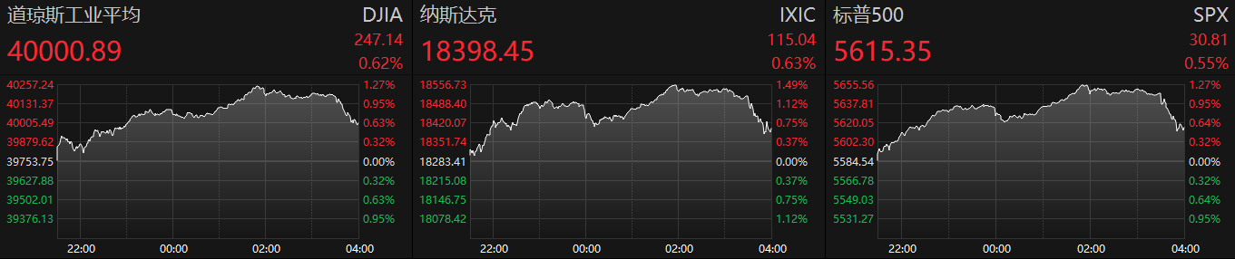 ►美股上周五收高,三大股指上周均录得涨幅。市场领涨板块扩大,家得宝与卡特彼勒等参与推动道指上扬,盘中创下历史新高。美国6月PPI环比增长0.2%,稍高于市场预期。投资者关注金融行业财报与最近出现的板块轮动迹象。截至收盘,道琼斯指数涨0.62%,纳斯达克指数涨0.63%,标普500指数涨0.55%,热门中概股涨跌不一,纳斯达克中国金龙指数涨0.60%。