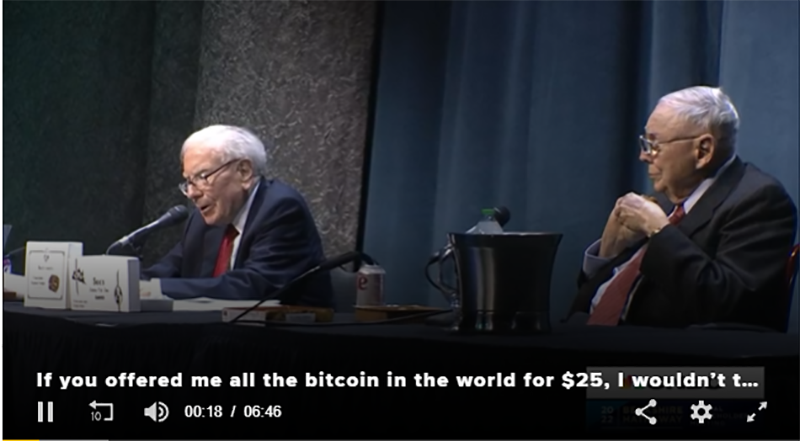 巴菲特也重申了他对比特币的怀疑态度,称他不愿意以极低的价格购买比特币,因为它不会产生任何价值。