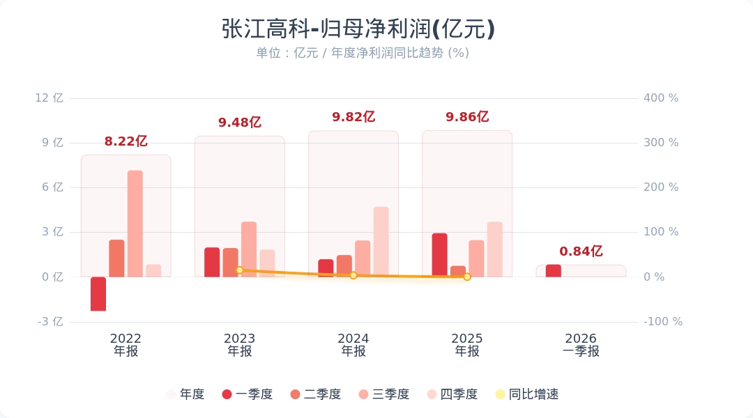 张江高科(600895.SH)公告称,2026年第一季度实现营业收入8.38亿元,同比下降31.28%;归属于上市公司股东的净利润为8351.36万元,同比下降71.64%。业绩变动主要原因为本期公司空间载体销售收入较上年同期减少;持有其他非流动金融资产取得的投资收益较上年同期减少;同时本期公司下属合营企业持有的以公允价值计量且其变动计入当期损益的金融资产公允价值下降,而上年同期该金融资产的公允价值为上升,使得公司按权益法确认的该合营企业长期股权投资收益较上年同期减少。小财注:公司Q1净利润0.84亿,2025年Q4净利润3.7亿,据此计算,Q1净利润环比下降77%。
