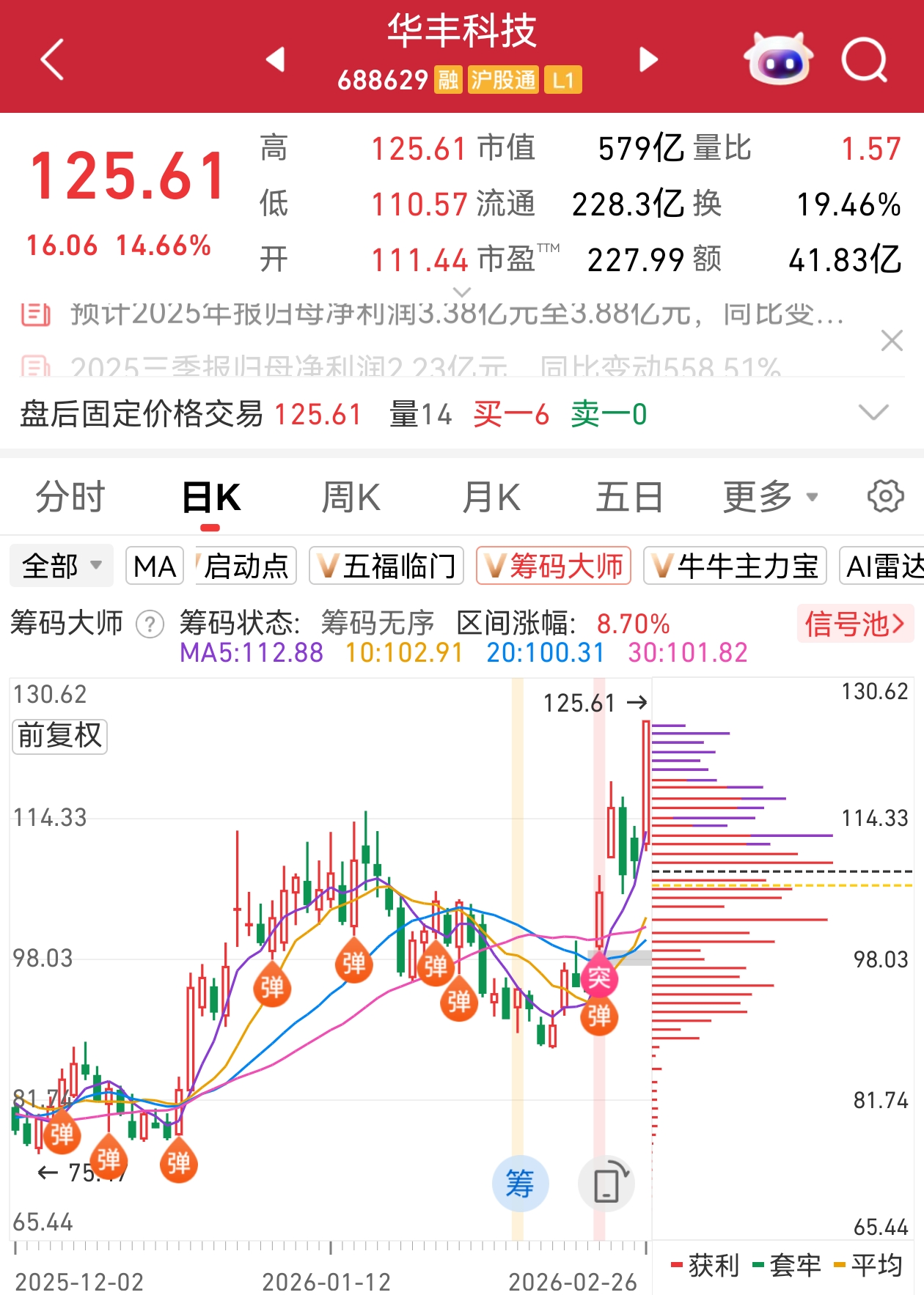 注:“筹码大师”显示,华丰科技在2026年2月23日出现“突”、“弹”信号!