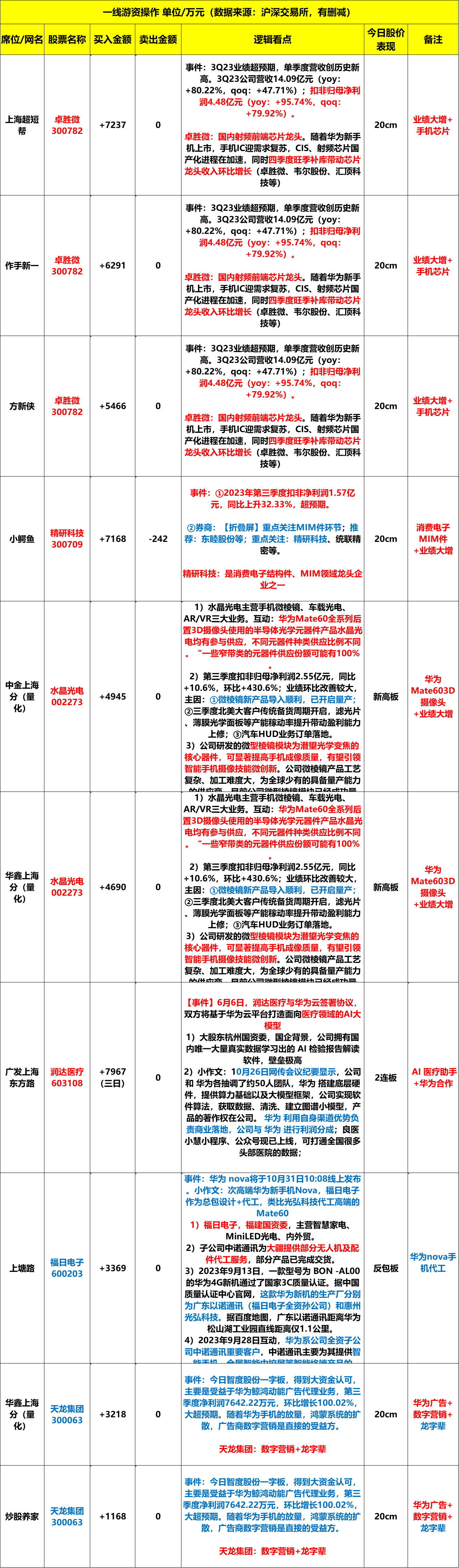2023年10月30日,周一,龙虎榜解析。
