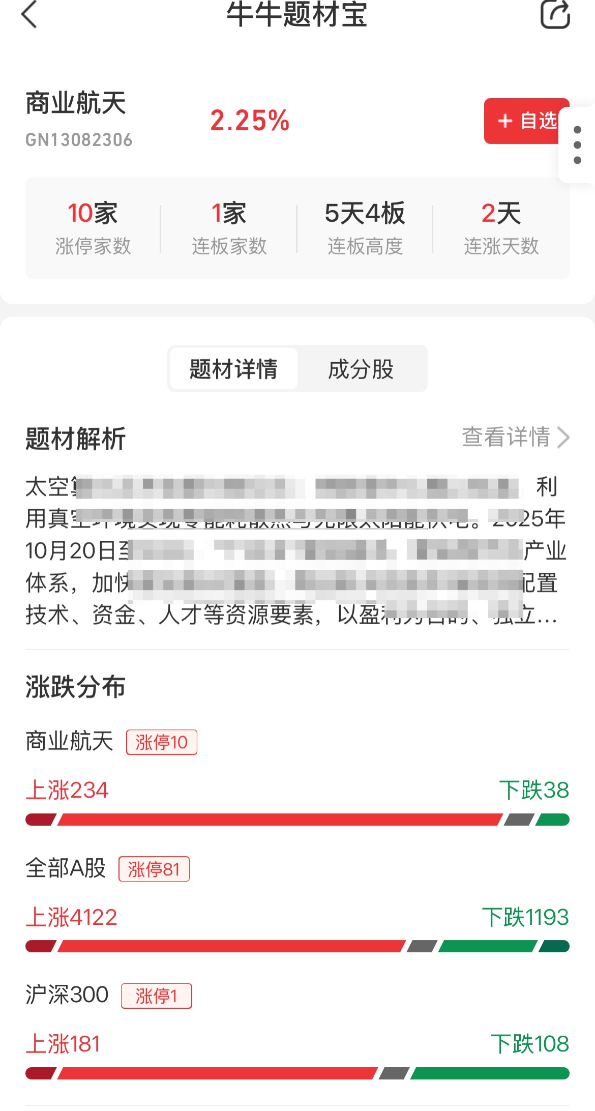 小九注:商业航天方面利好不断!周五10股涨停!该板块能否成长为市场新主线?点击此处解锁牛牛题材宝——你的题材研究助手,查看详情>>