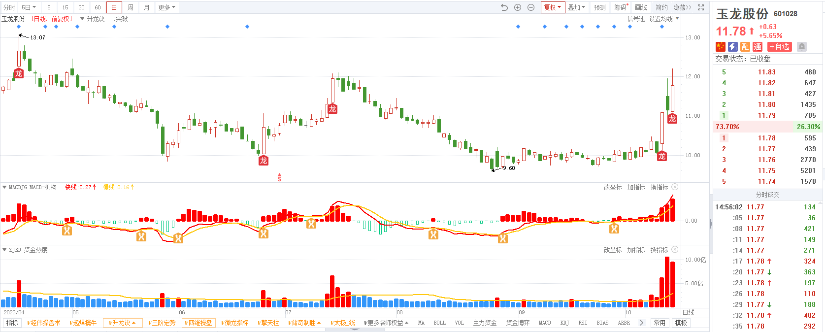 3)参考技术指标:玉龙股份-升龙诀指标-出现龙信号