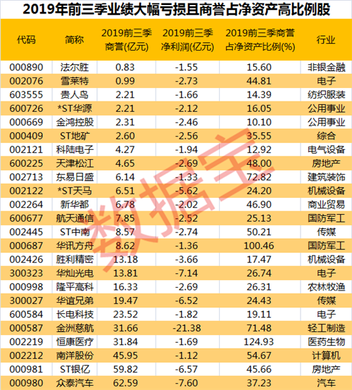 今年的业绩雷来了,这一份业绩预亏股或者商誉风险较高股名单请收好。