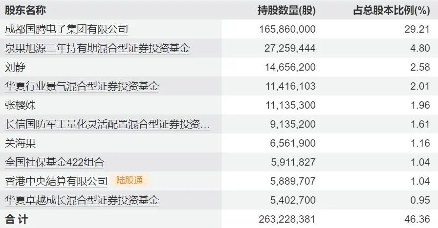 截至2025年9月末,国腾集团持有振芯科技股票1.66亿股,持股比例为29.21%。上市公司第二大股东泉果旭源三年持有期混合型基金持股2725.94万股,持股比例为4.80%。公司其余主要股东的持股比例均低于3%。
