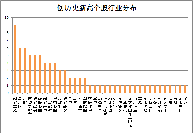 另外,国瓷材料、欧普康视、飞荣达、菲林格尔、健友股份、中航光电、凯莱英、恒瑞医药、贵州茅台、美格智能、亿纬锂能、爱尔眼科、泰格医药、中孚信息、光弘科技、天坛生物、汇顶科技、泸州老窖、五粮液、立讯精密、视源股份、我武生物、迈瑞医疗、济民制药、益丰药房等创历史新高的次数在6次以上