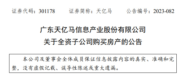 8月3日晚间天亿马(301178)公告,全资子公司深圳市互联精英信息技术有限公司(下称“互联精英”)拟向深圳市燕翰实业有限公司购买其位于深圳市南山区T406-0038地块之上开发建设的侨城一号广场大厦27层03、05、06、07、08号房。
