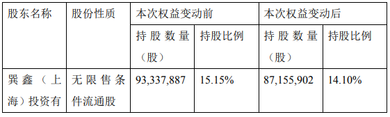 本次权益变动后,巽鑫投资持股比例由前次权益变动时 15.15%降至 14.10%,持股比例累计变动达到1%。公司无控股股东、实际控制人,本次权益变动不会导致公司无控股股东、实际控制人状态发生变化,不会影响公司的治理结构和持续经营。
