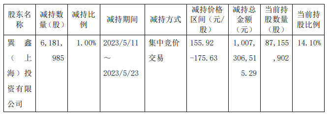 中微公司5月23日晚间发布公告,截至2023年5月23日,巽鑫投资通过集中竞价方式减持股份6,181,985股,占公司股份总数的1%,本次集中竞价交易减持数量已过半,减持计划尚未实施完毕。
