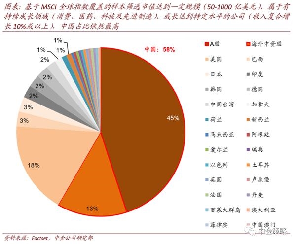 政策与改革逐步落地,增长复苏下半年有望继续深化。中金宏观组预计二、三、四季度GDP增长分别为3.8%/5.6%/6.0%,我们自上而下预计A股盈利在一季度深跌-24%后继续恢复,全年跌幅收窄至-6.3%,增长在2021年可能恢复至双位数。相比全球,中国政策回旋余地充足,要素市场改革助推新型城市化、继续开放的路线清晰,经济新老结构转换进展中,中国依然是寻找长线成长机会最好的市场。基于MSCI全球指数覆盖的样本筛选市值达到一定规模(50-1000亿美元)、属于有持续成长领域(消费、医药、科技及先进制造)、成长达到特定水平的公司(收入复合增长10%或以上),中国占比依然最高。