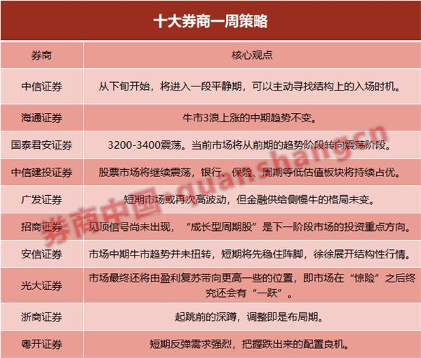 目前沪指已回调至20日均线附近寻找支撑,此处支撑力度较强,在前期量能放大及市场情绪高涨的背景之下,短期再度反弹的概率较大;而创业板指虽然跌破10日均线,但周五收于阳十字星,说明市场做多动力依旧存在,短期市场存在反弹需求。反弹的空间还需要关注量能的变化,如果量能出现持续萎缩,反弹空间则相对有限;如果量能继续释放,则有望走出强势反弹。反弹过程中龙头板块的引领非常重要,对于市场情绪的提升以及稳定性都将有所帮助,被市场各方认可的龙头将引领指数突破近期新高,或者将指数维持在强势区域进行整固,具体金融、科技、消费、周期板块均具备较好人气。同时应当关注此轮反弹能否突破近期高点,这是指数形成双头或者三浪上涨趋势的核心。从中期来看,当前A股具备基本面和资金面的双重利好支撑,长牛逻辑仍在,节奏方面,后续指数大概率将以一种在震荡中上涨的“上台阶”的方式演绎。