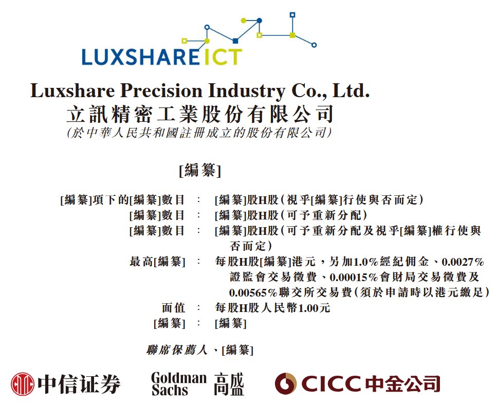 据港交所2月27日披露,立讯精密工业股份有限公司(简称:立讯精密(002475.SZ))递表港交所主板,中信证券、高盛、中金公司为其联席保荐人。该公司曾于2025年8月18日向港交所递交过上市申请。