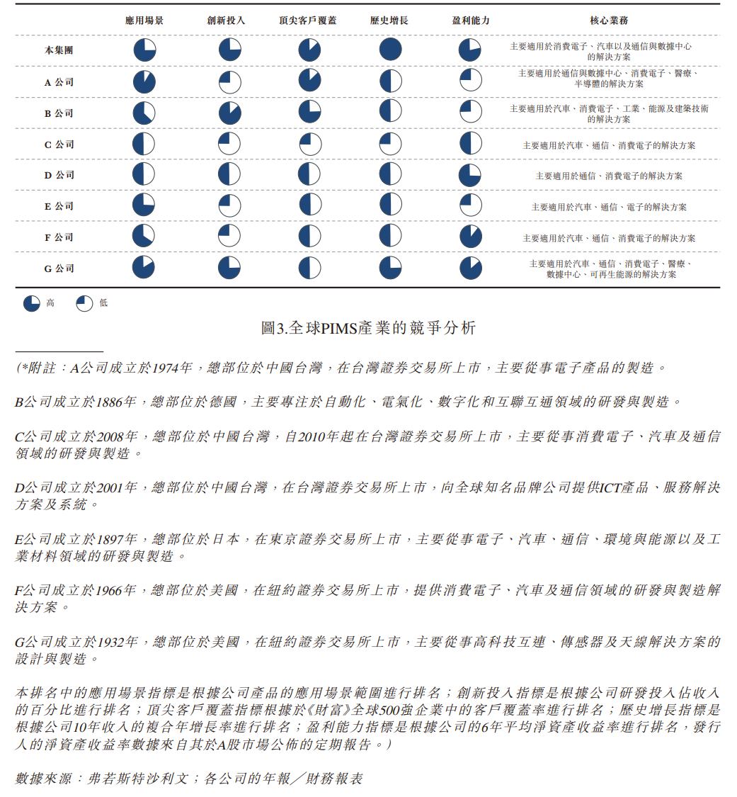 根据2024年全球收入市场份额,集团位列全球PIMS提供商第4位,在总部位于中国大陆的企业中排名最高。在全球PIMS市场中,于2024年的前五大厂商分别为A公司、B公司、HH公司、本集团和C公司,所占市场份额分别为17.1%、5.0%、3.5%、3.0%和2.8%。