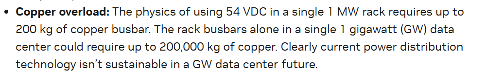 据英伟达官网去年刊登的一份技术论文指出,一个容量在一吉瓦的传统数据中心机架,需要高达50万吨铜母线,这引起外界对未来铜的供需形势大为担忧。