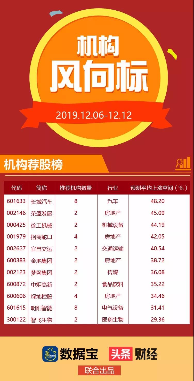数据宝统计显示,近一周机构买入评级不少于4次的个股中,将公布的目标价与最新收盘价相比,长城汽车、招商蛇口、绿地控股、明阳智能等20股平均上涨空间超二成。