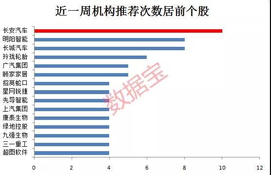 从个股来看,获机构推荐次数超过3次的有15家公司,其中长安汽车、长城汽车、明阳智能、玲珑轮胎等5股获买入推荐次数居前,分别有10、8、8、6次。获机构推荐次数较高的还有超图软件、九强生物、顾家家居等。