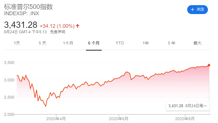 隔夜欧美股市受到FDA批准血浆疗法等消息刺激,标普500指数、纳指均再创历史新高。收盘时,标普500指数涨1%,报3431.28点;纳斯达克指数涨0.60%,报11379.72点。