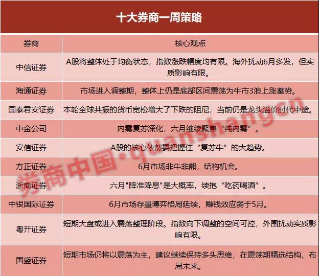 6月A股将在整体均衡的状态下经历结构再平衡的过程;配置上,新旧基建和科技白马依然是全年主线;而在6月结构再平衡的过程中,建议关注基建板块、后地产可选消费、业绩确定性高的科技、消费龙头3条主线。