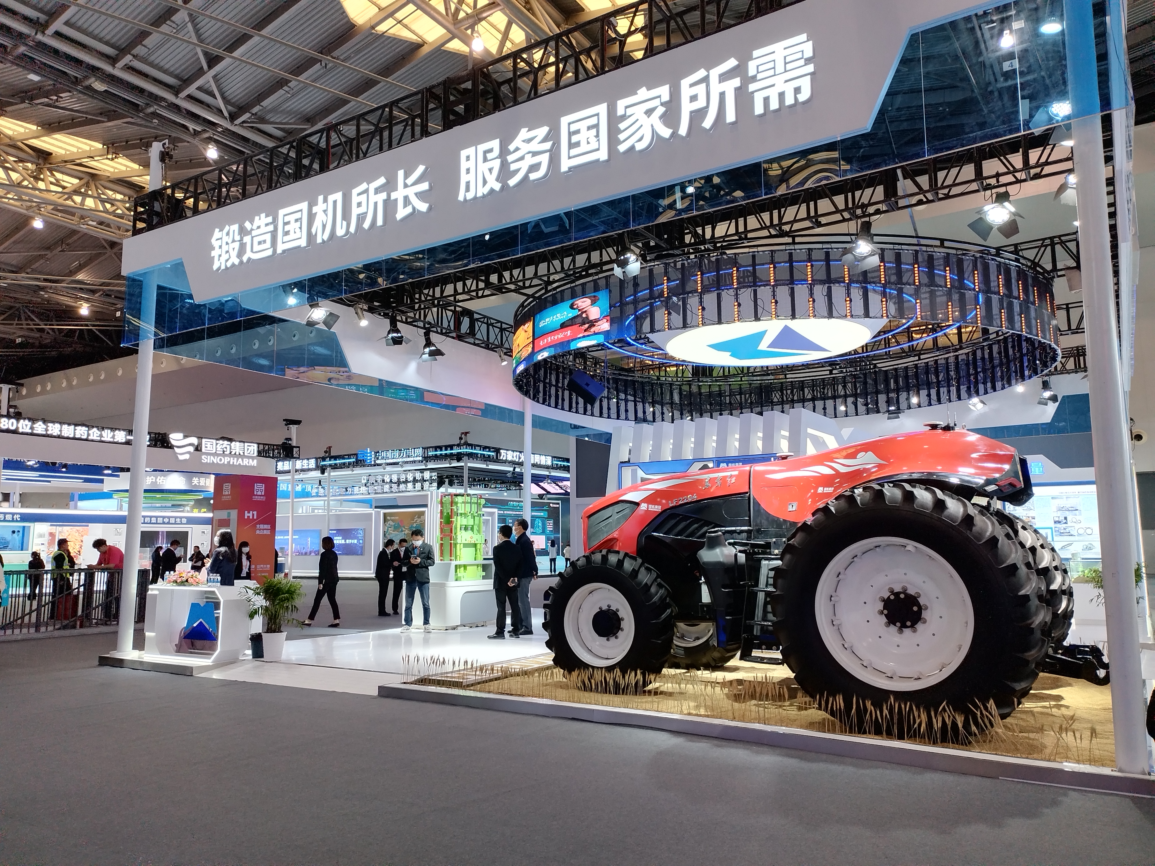 在国机集团展台,一台红色拖拉机引发路人频频驻足。这台长约5.5米,宽约3.7米,高约3.33米的“东方红”LF2204无人驾驶拖拉机,是我国自主研发的首台无人驾驶大马力拖拉机。