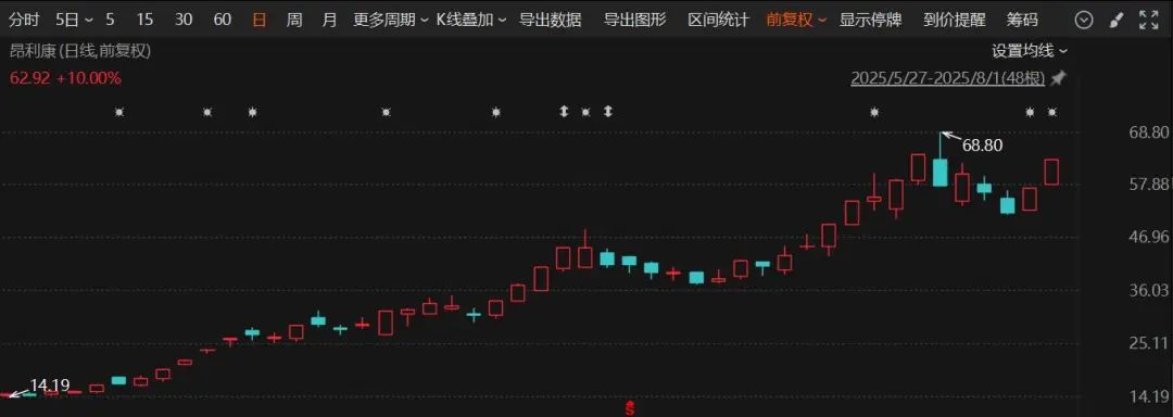 今年6月份以来,昂立康股价呈现显著上行走势,期间多次实现连续涨停,累计最大涨幅达到360%。