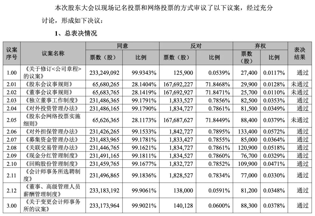 控制权纷争再现?这家上市公司三项公司治理制度修订案被否决