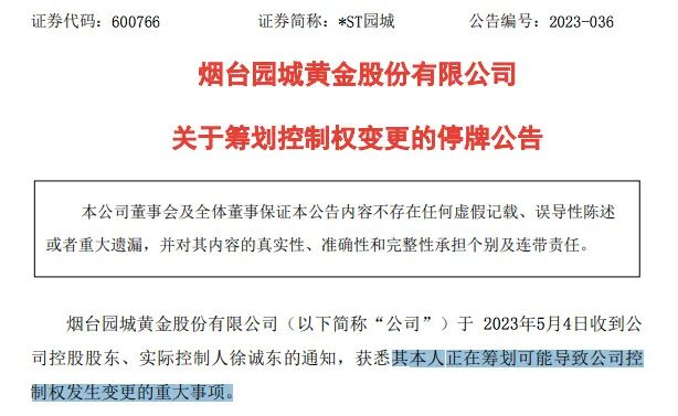 “披星戴帽”前一天晚上,*ST园城披露实控人拟筹划控制权变更!