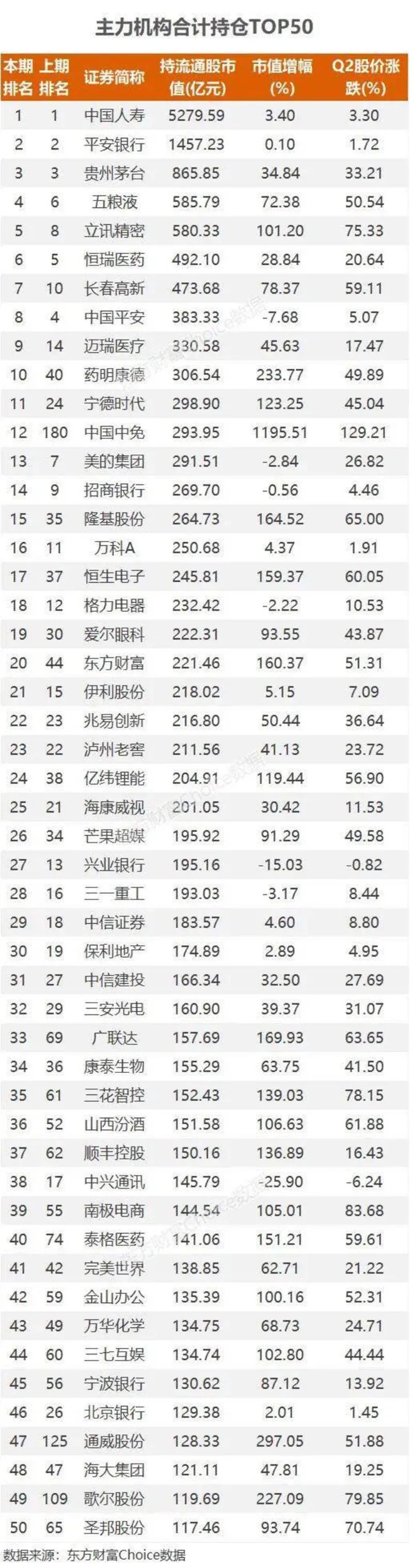随着半年报的披露接近尾声,机构持仓情况也更加清晰地展现出来。