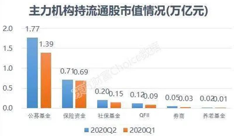 具体看,各大主力机构持流通股市值均较一季度末有明显增加,其中公募最为明显,增加约3800亿元;社保基金紧随公募之后,增加约500亿元;其他机构增加的量级都是百亿级别。