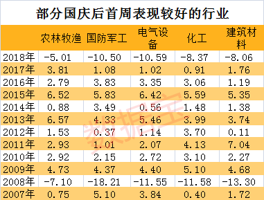天风证券认为国庆节后市场上涨概率较大,对10月份的市场表现并不需要过于悲观。在2005年至今,统计的四季度60大重点行业上涨概率中,风电、水泥、保险、银行、养殖、特高压、工程机械、航运、空调上涨的概率都超过了70%。