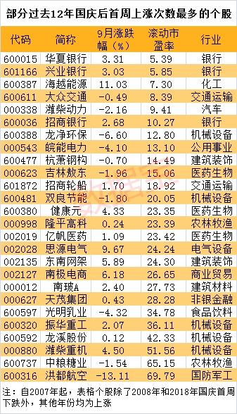 从个股来看,排除2008年和2018年,共有35股在近12年节后首周均表现为上涨。其中机械设备行业个股有8只,包括振华重工、潍柴重机、双良节能、龙溪股份等,医药生物、农林牧渔3个行业各有4只,银行业有3只。