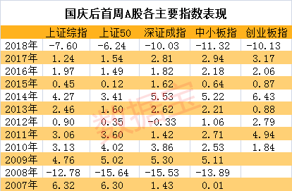 而A股节后首周表现如何呢?数据宝统计过去12年A股国庆节后首周表现发现,除了2008年和2018年两个年份,其他10年节后首周各大指数多数为上涨,仅深成指2012年微跌了0.33%。2007年、2009年、2010年、2014年甚至都表现为大涨。而出现这种现象的主要原因或为“投资者节前减仓避险,节后回补仓位”所造成的。