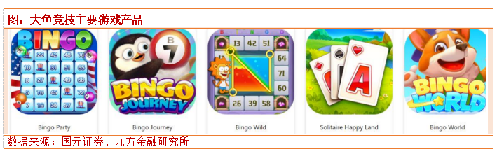 大鱼竞技专注海外市场,聚焦Bingo类游戏。大鱼竞技成立于2016年,专注欧美轻度游戏市场,尤其是Bingo品类研发、推广和运营。大鱼竞技旗下主要运营的游戏产品为《BingoParty》、《BingoSapes》,在包括AppStore、Facebook和Googleplay等多个海外平台运营。Bingo系列产品在海外市场排行榜排名靠前。截至2023年初,海外游戏产品已发行至全球超过100个国家和地区,累计注册用户超过3500万人,多次取得GooglePlay全球推荐。