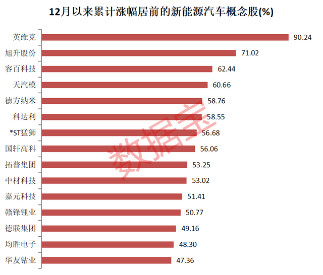 市场表现来看,上述18股12月以来均收涨,仅精达股份、江铃汽车、潍柴动力及南都电源跑输新能源汽车指数。