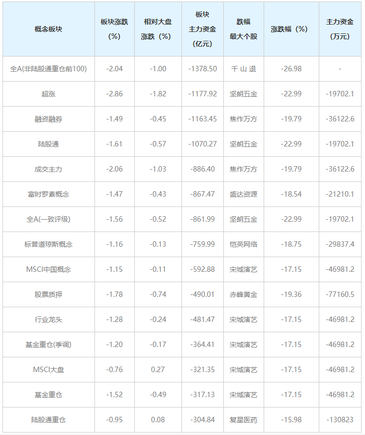 三大概念股被主力资金抛弃 高位股跌幅最大