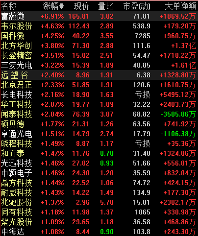 芯片板块近期受政策利好刺激,在昨日板块龙头圣邦股份涨停,兆易创新大涨9.76%后,今日板块表现持续活跃: