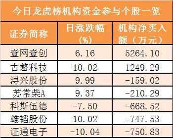 盘后龙虎榜数据显示,机构现身7股,其中壹网壹创等2股呈现机构资金净买入,证通电子等5股呈现机构资金净卖出。