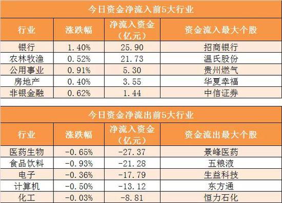 28个申万一级行业中,9个行业实现资金净流入,其中银行业净流入25.9亿元居首。