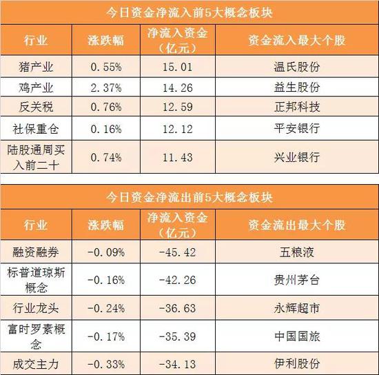 猪产业概念净流入15.01亿元居首