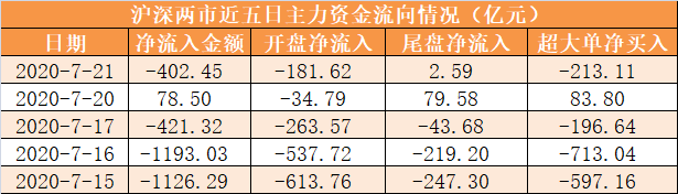 【21日资金路线图】主力资金净流出402亿元
