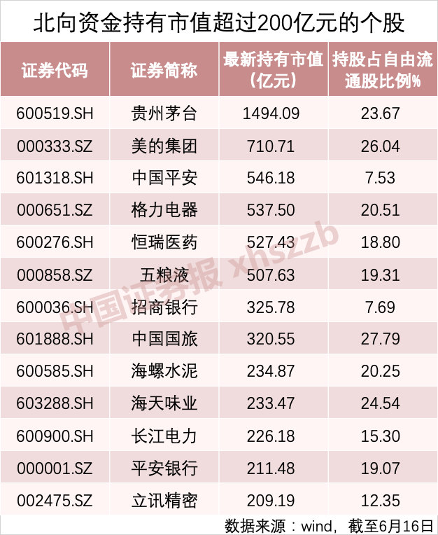 从最新持有市值看,北向资金持有贵州茅台近1500亿元,持有美的集团超700亿元,对中国平安、格力电器、恒瑞医药、五粮液的持有市值超500亿元。