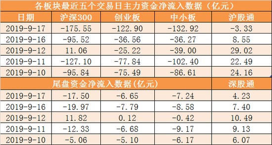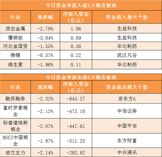 沪深300今日主力资金净流出175.55亿元,创业板净流出122.9亿元,中小板净流出132.92亿元。沪股通净流出3.33亿元,深股通净流入4.23亿元(本文中沪股通、深股通净流入额以当日已用额度来计,与成交净买入额略有差异,但表示的意义大体一致)。