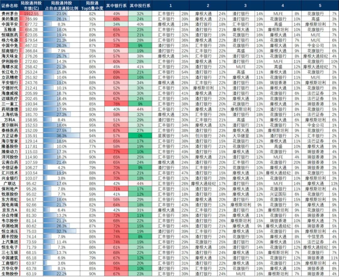 兴业证券统计了北向资金持股市值前50个股的托管机构情况,发现整体来看,这些个股的托管机构仍以国际型银行为主,其背后资金的“长钱”属性相对更多,其持股也相对会更加稳定。而类似海螺水泥、药明康德、广联达的托管机构中,国际投行占比相对较多,相对来说可能“短钱”属性更多一些。