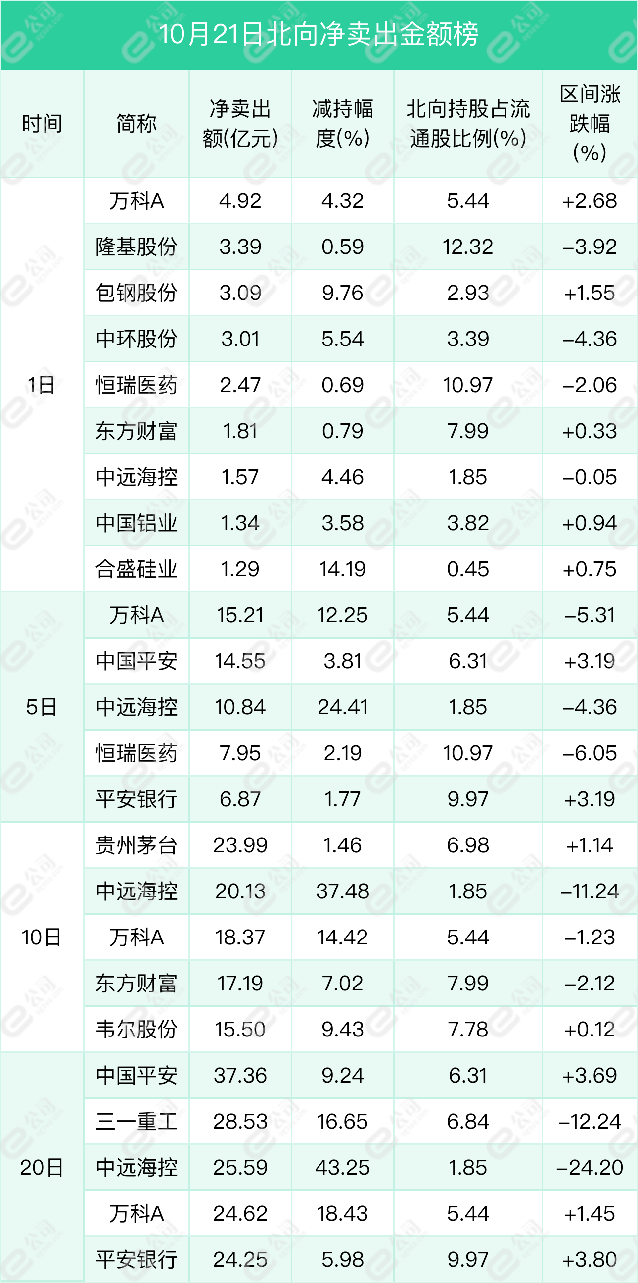 万科A、隆基股份、包钢股份遭北向资金净卖出金额居前,分别为4.92亿元、3.39亿元、3.09亿元,减持幅度分别为4.32%、0.59%、9.76%。