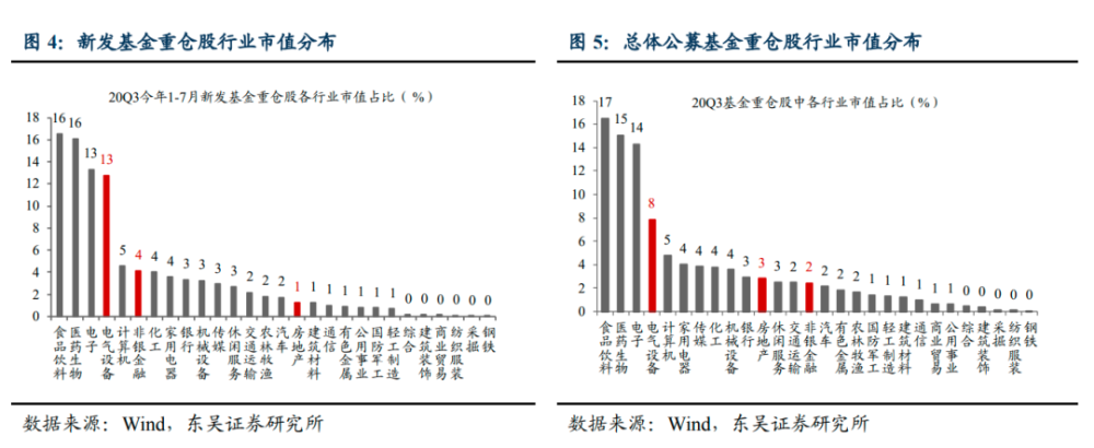以三季度电气设备板块的大涨为例,其一定程度上是由新发基金大幅买入贡献的。东吴证券研究显示,新发基金三季度电气设备持仓市值占基金资产净值的比例达到13%,较公募基金整体的8%超配了5个百分点。