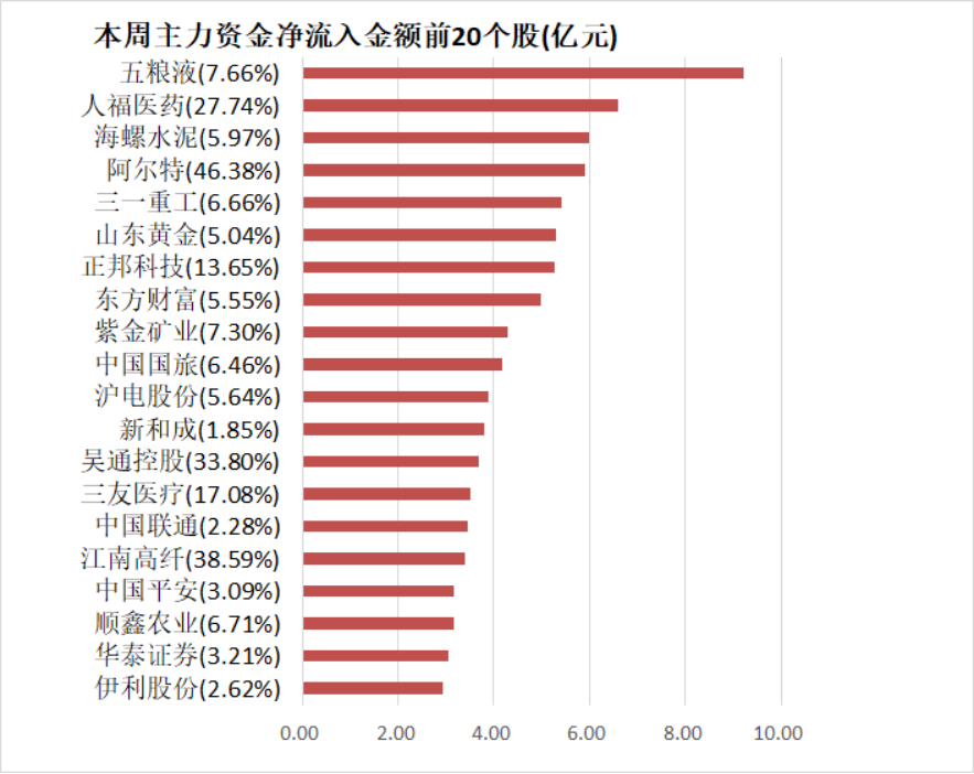 (注:此表为主力资金净流入统计,与上一表格及下一表格中统计口径均不同)
