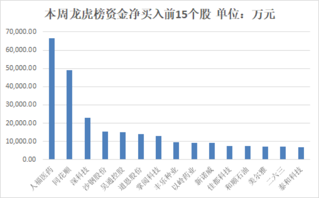 个股龙虎榜净买入金额居前的15只个股分别为: