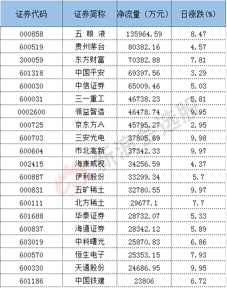 北向资金继续买买买 五粮液贵州茅台流入最多