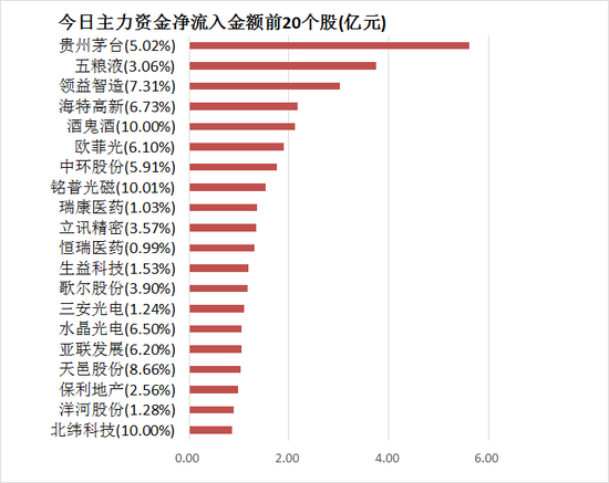 沪深300今日主力资金净流出51.87亿元,创业板净流出54.38亿元,中小板净流出39.19亿元。沪股通净流入28.83亿元,深股通净流入18.8亿元(本文中沪股通、深股通净流入额以当日已用额度来计,与成交净买入额略有差异,但表示的意义大体一致)。