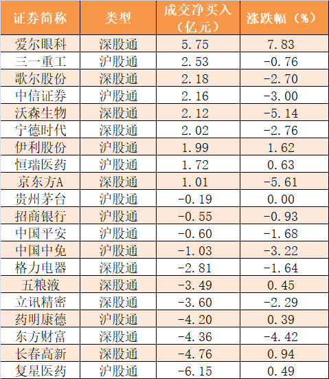 7、今日沪深股通前十大活跃股