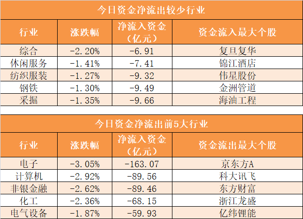 3、电子行业净流出163.07亿元居首